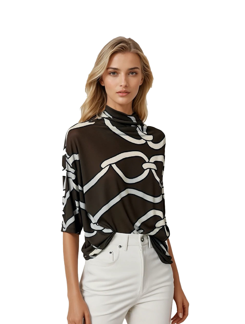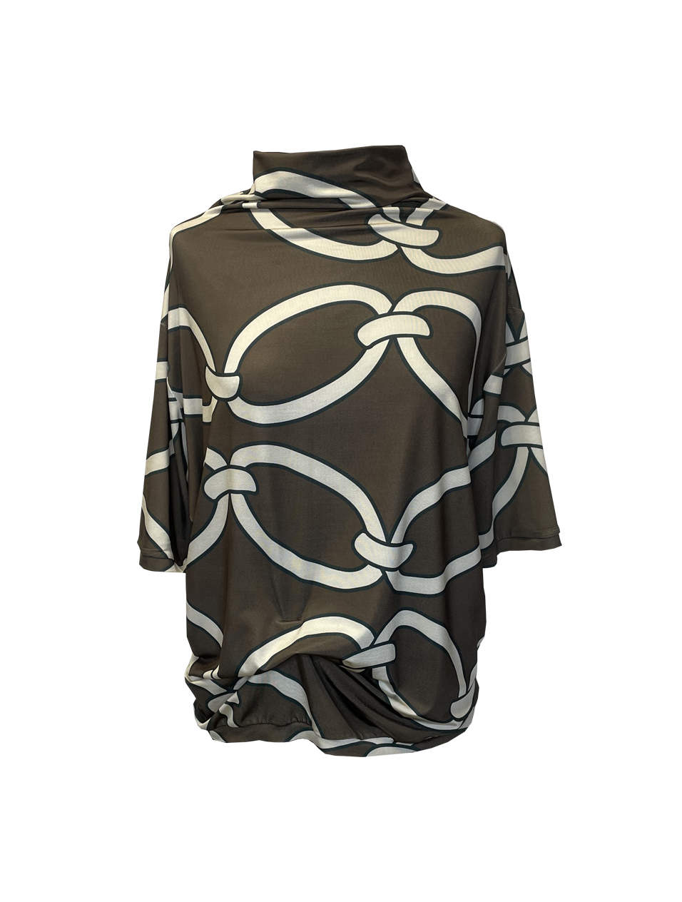 Lahkotna in unikatna ženska majica s kratkimi rokavi za poletne dni. Na sprednjem delu majice je “guba”, ob strani rahli naborki.