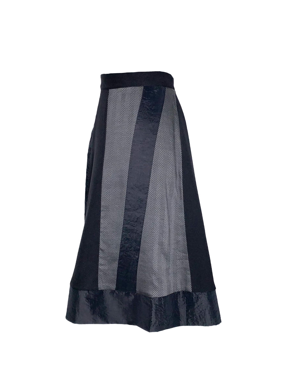 Žensko dolgo črno krilo, v kombinaciji s sivimi odtenki. Krilo je sestavljeno iz večih tkanin (krpanka), zato je tudi posebne oblike.