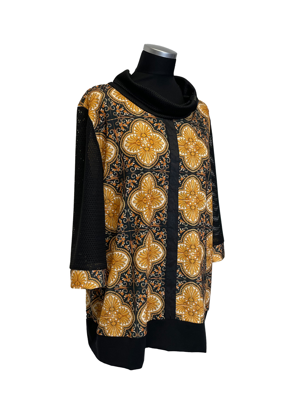 Širši ovratnik iz mreže. Pravtako so iz mreže tudi rokavi.