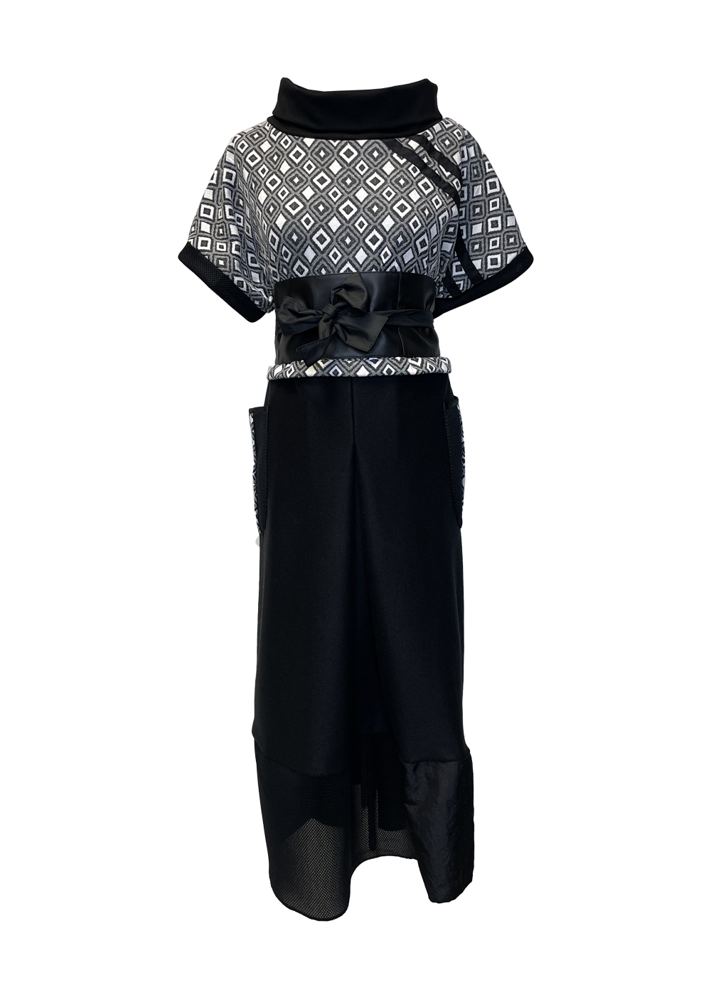 Unikatna ženska obleka Dona. Unikatna ženska obleka iz bombaža z udobnim, širšim puli ovratnikom in kratkimi rokavi. Obleka ima dva praktična žepa.